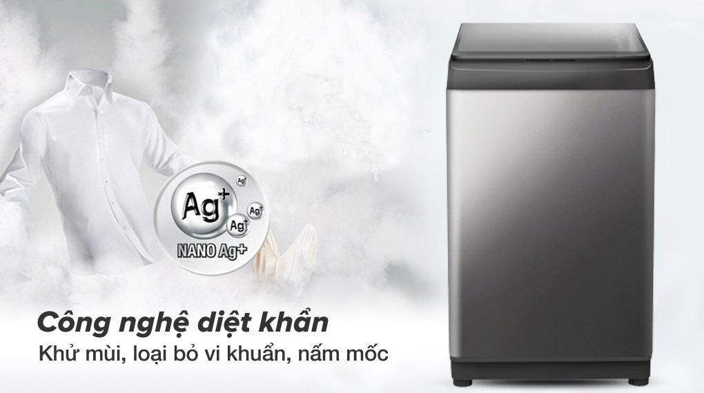 – Công nghệ diệt khuẩn khử mùi Nano Ag+ với hàng triệu phân tử bạc Ag+ len lỏi vào từng ngóc ngách lồng giặt để mang đến hiệu quả loại bỏ vi khuẩn, vi rút, nấm mốc, cho nguồn nước sạch khuẩn, giặt an toàn, bảo vệ sức khỏe gia đình bạn.