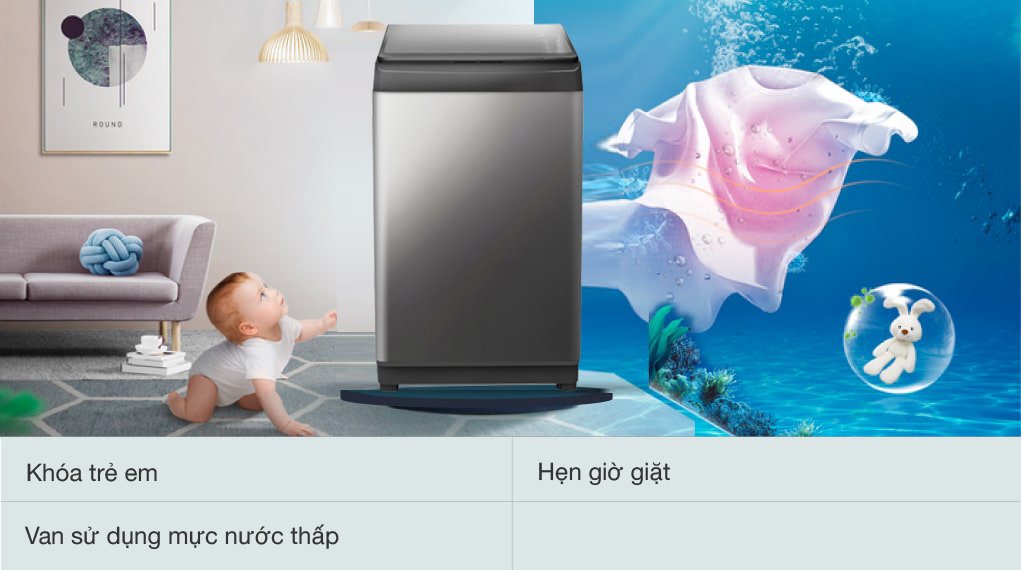 – Khóa trẻ em: Giúp vô hiệu hóa bảng điều khiển khi máy đang hoạt động, tránh các va chạm vô tình gây thay đổi chế độ giặt, đặc biệt là ở gia đình trẻ nhỏ hay táy máy.