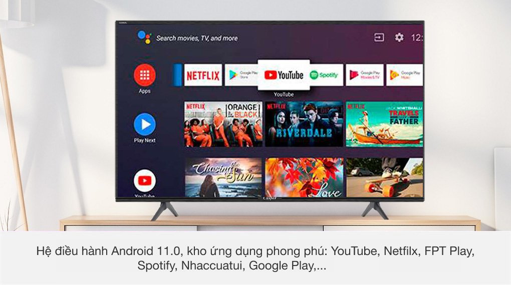 Hệ điều hành Android 11.0 trên chiếc smart tivi Casper này được thiết kế giao diện rất thân thiện, người dùng có thể nhanh chóng làm quen cách sử dụng.