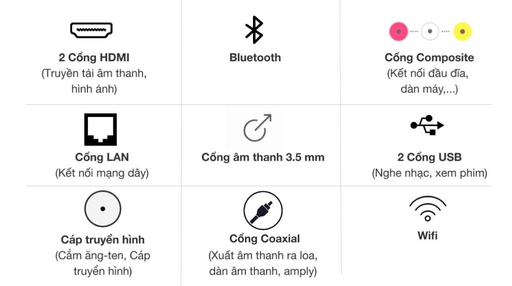 Lưu ý: Từ 05/2022 cổng Optical sẽ được thay đổi sang cổng Coaxial.