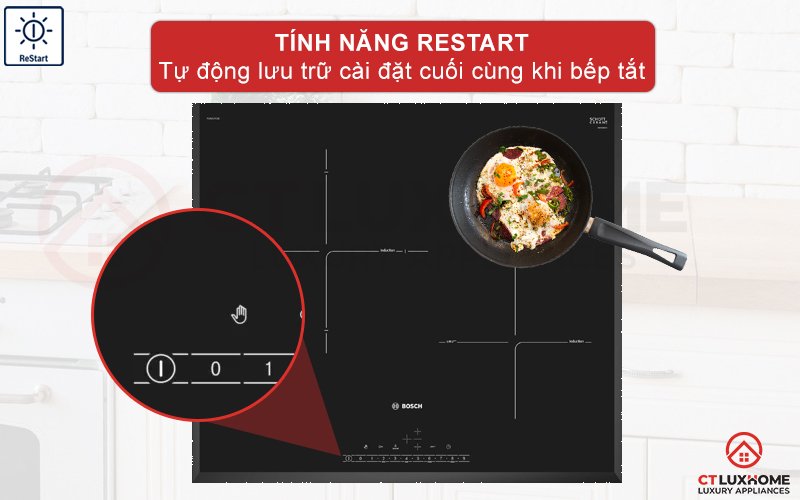 Tính năng ReStart tự động lưu trữ cài đặt cuối khi tắt bếp.