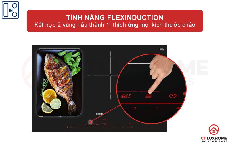 Chức năng FlexInduction kết hợp 2 vùng nấu thành 1 vùng nấu lớn