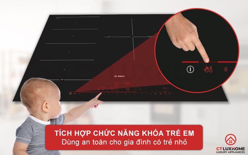 Tính năng khóa các chương trình để tránh trẻ em vô tình kích hoạt bếp gây nguy hiểm
