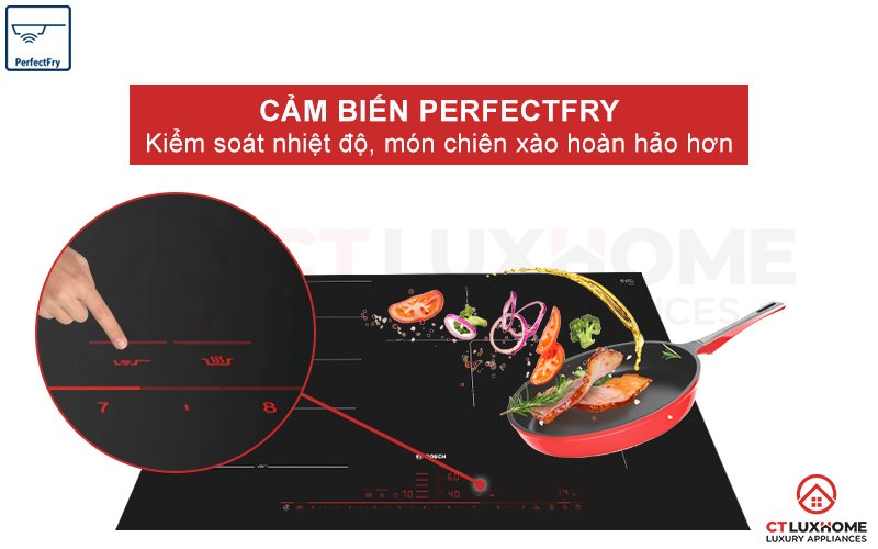 Với trang bị cảm biến PerfectFry, cảm biến sẽ liên tục kiểm tra và đo lượng nhiệt trên chảo, đồng thời theo dõi mức nhiệt tại vùng nấu.