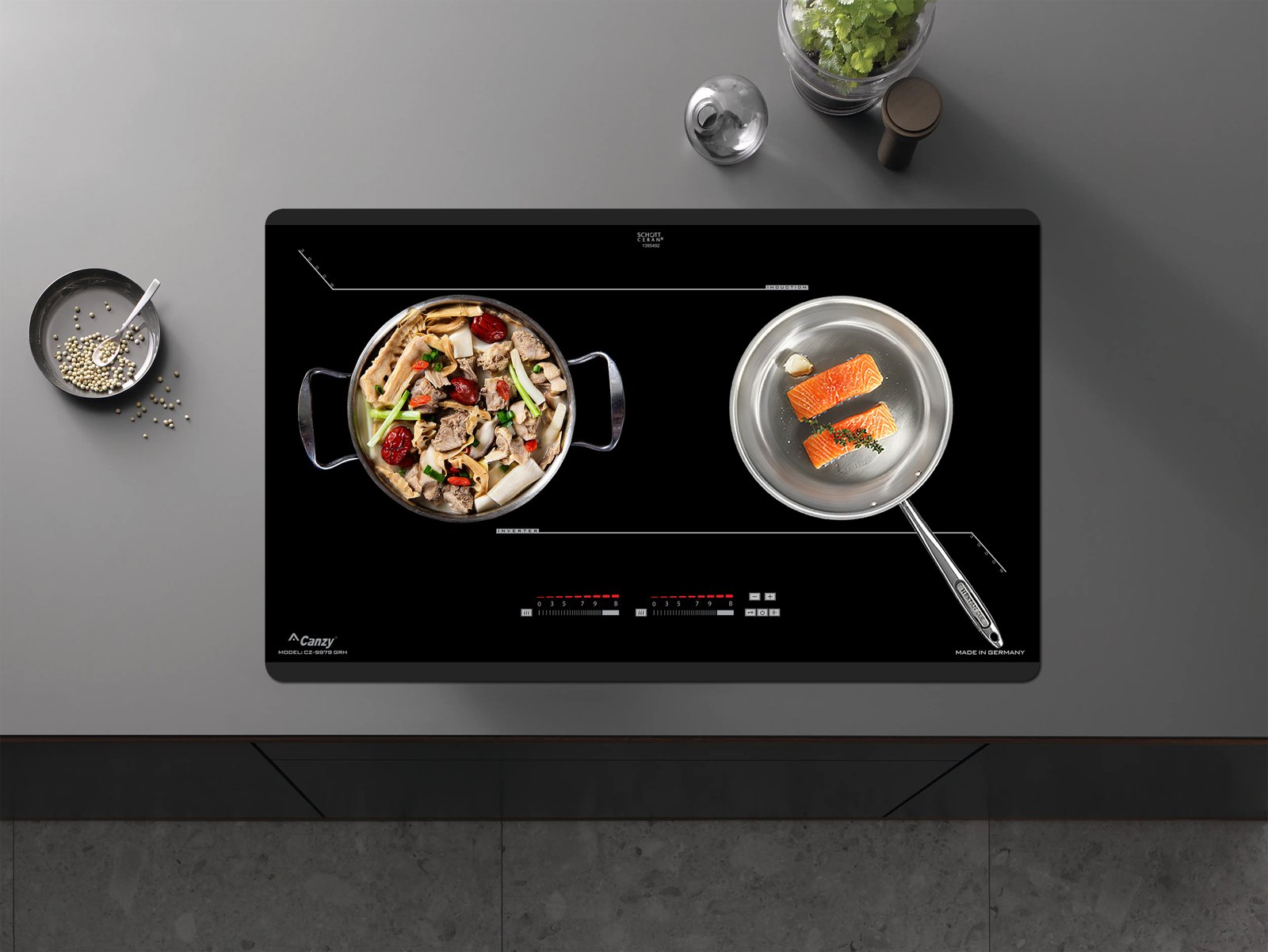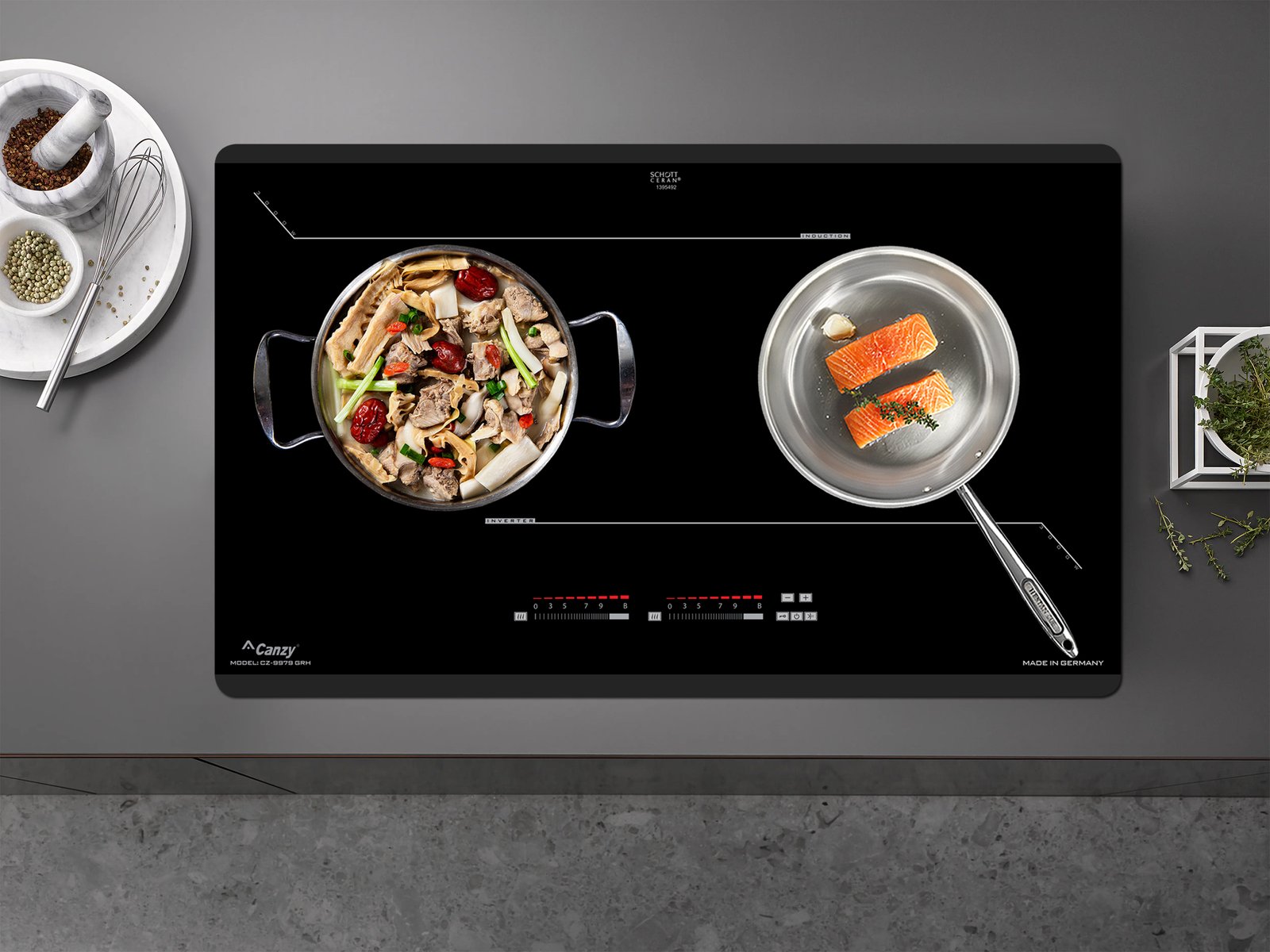 Bếp từ Canzy CZ-9979 GRH | nhập khẩu nguyên chiếc từ CHLB Đức | thiết kế sang trọng | hệ điều khiển cảm ứng Slider Control siêu nhạy | an toàn, bền bỉ và tiết kiệm điện năng
