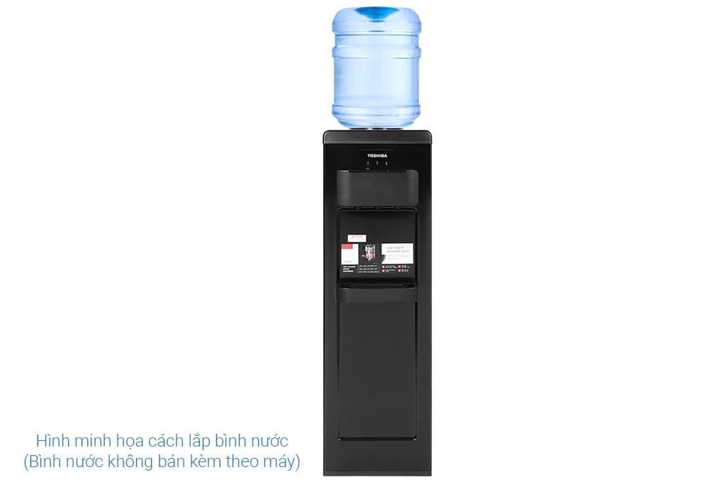 Kiểu dáng cây nước nóng lạnh Toshiba hiện đại, màu đen thanh lịch, kết cấu chắc chắn, tạo điểm nhấn cho không gian phòng khách, phòng làm việc, phòng bếp gia đình, công ty
