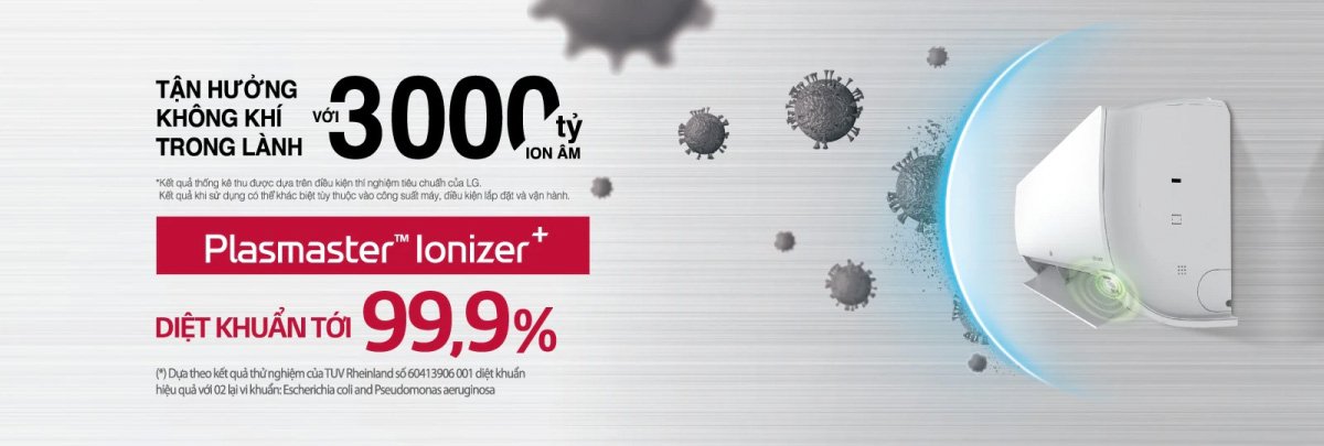 Máy Lạnh Inverter 2.5 HP V24API1 được tích hợp công nghệ Plasmaster Ionizer tạo ra hàng nghìn tỷ các hạt ion mang điện tích và phân tán đều trong không khí. Những ion này sẽ liên kết và vô hiệu hóa các loại vi khuẩn, vi-rút tồn tại trong không khí. Nhờ đó, chất lượng không khí trong phòng được cải thiện đáng kể.