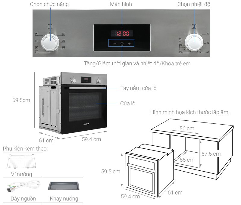 THIẾT KẾ CỦA LÒ NƯỚNG BOSCH HBF113BR0A