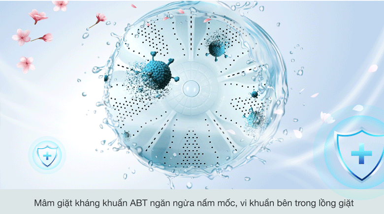 – Mâm giặt kháng khuẩn ABT được phun một lớp chất đặc biệt giúp máy giặt Aqua có khả năng ngăn chặn sự phát triển của vi khuẩn và nấm mốc bám vào quần áo, giúp khu vực lồng giặt luôn được giữ sạch sẽ và đảm bảo khả năng kháng khuẩn của máy giặt.