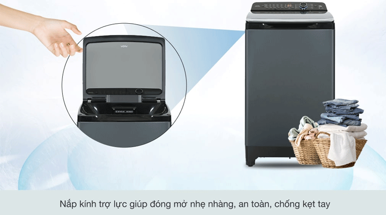 – Nắp máy làm từ kính chịu lực có khả năng giảm chấn mang lại sự bền bỉ, chắc chắn cho phần cửa máy giặt, hạn chế kẹt tay, an toàn cho gia đình có trẻ nhỏ.