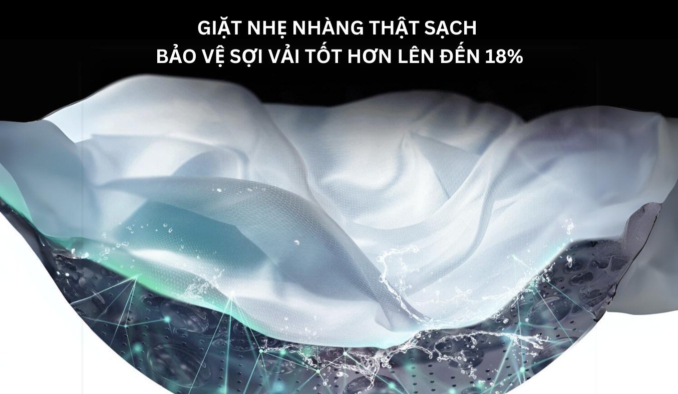 Công nghệ giặt cảm biến AI DD™ bảo vệ sợi vải tốt hơn 18%