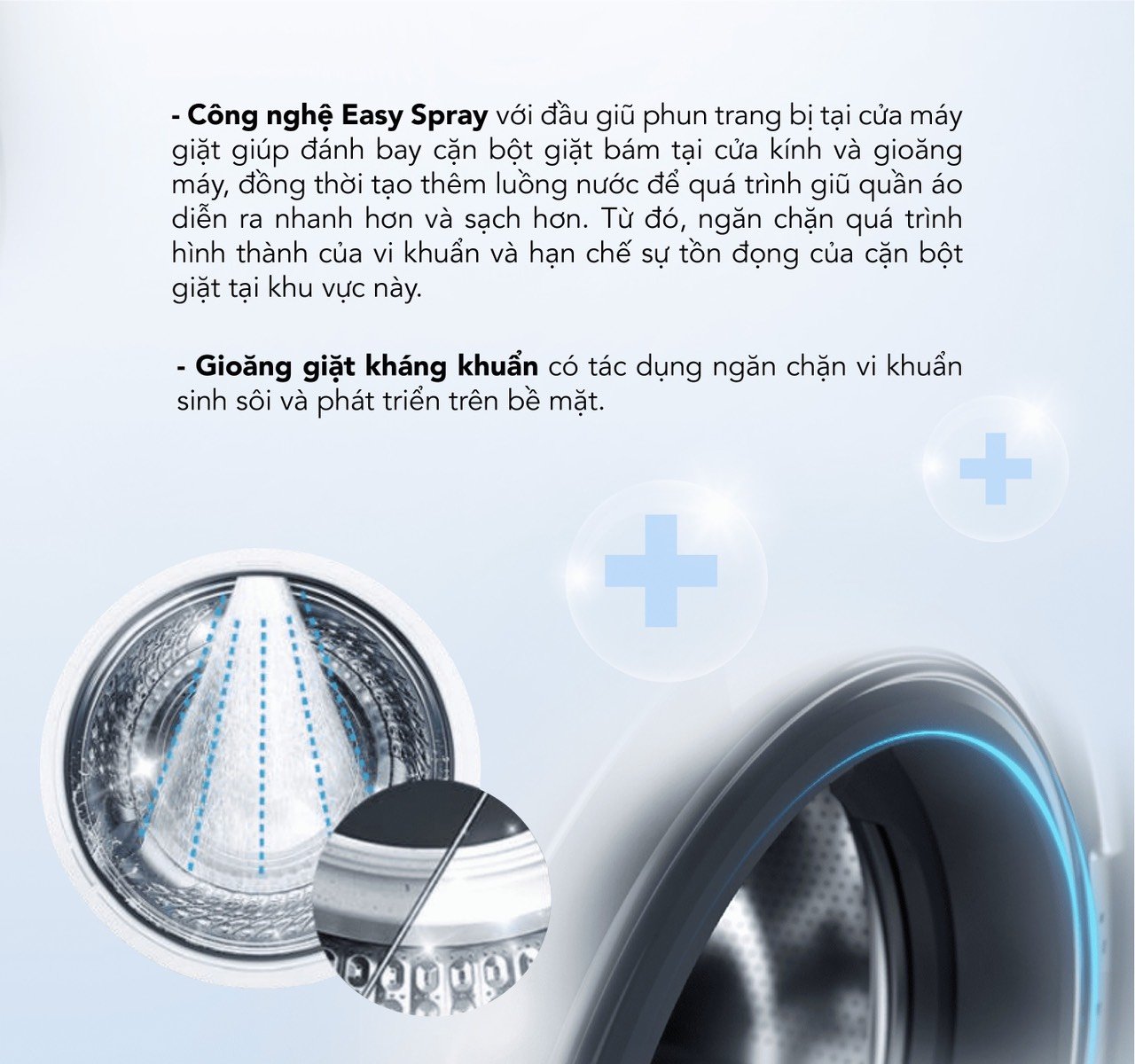 - Chương trình giặt: 15 Chương trình, Giặt sơ, Giặt tăng cường, Xả tăng cường, Giặt yên tĩnh