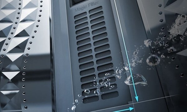Máy giặt của Samsung được trang bị bộ lọc lưới kép Magic Filter tiên tiến, nhằm nâng cao khả năng loại bỏ xơ vải sinh ra trong quá trình giặt để chúng không bám dính vào quần áo ở lần giặt sau gây mất thẩm mỹ, đồng thời ngăn chặn tắc nghẽn đường dẫn.
