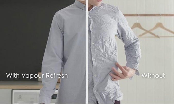 Chương trình giặt Vapour Refresh trên máy giặt Electrolux giúp làm mới và giảm nhăn quần áo hiệu quả chỉ trong 33 phút. Áo quần của bạn sẽ mềm mại và thơm mới, ít nhăn hơn tới 23% so với phơi khô thông thường.