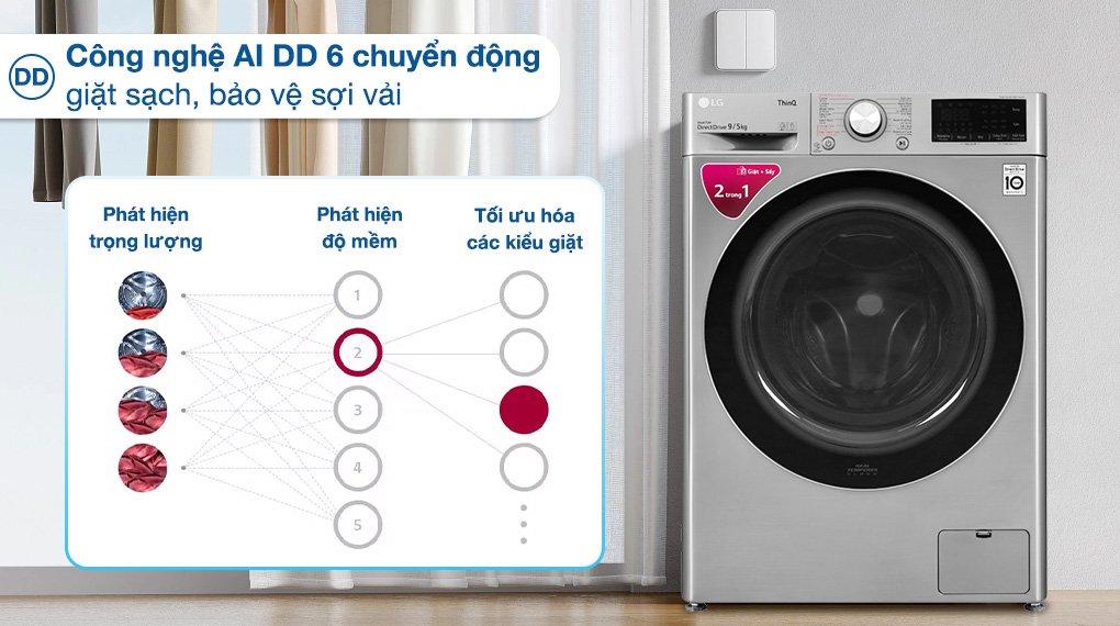 Công nghệ AI DD bảo vệ sợi vảiCông nghệ giặt hơi nước Steam (cửa trước)