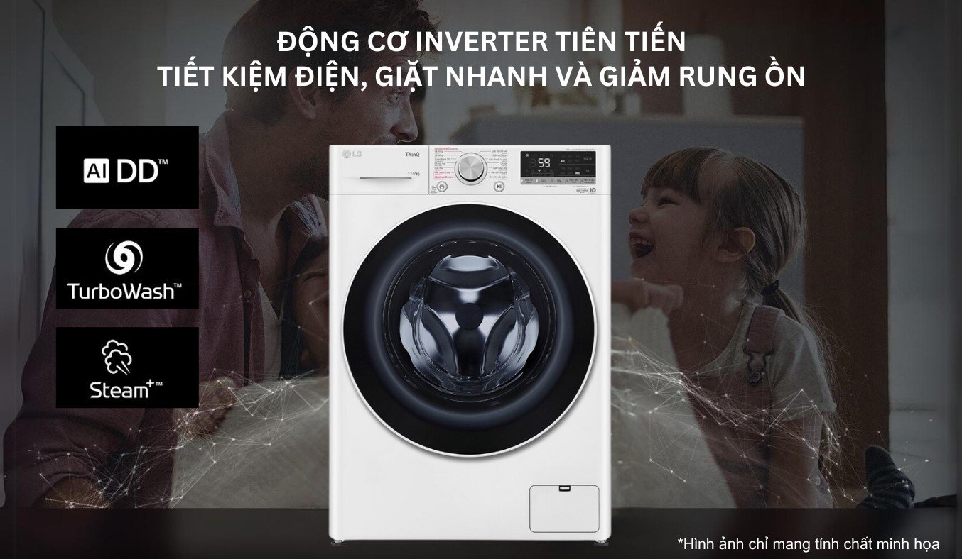 Hơn nữa, máy giặt sấy LG này sử dụng động cơ biến tần Inverter nên cho khả năng giặt sạch nhanh, hiệu quả nhưng vẫn đảm bảo giảm rung ồn và tiết kiệm điện để gia đình bạn không bị làm ồn và giảm chi phí trả tiền điện mỗi tháng.