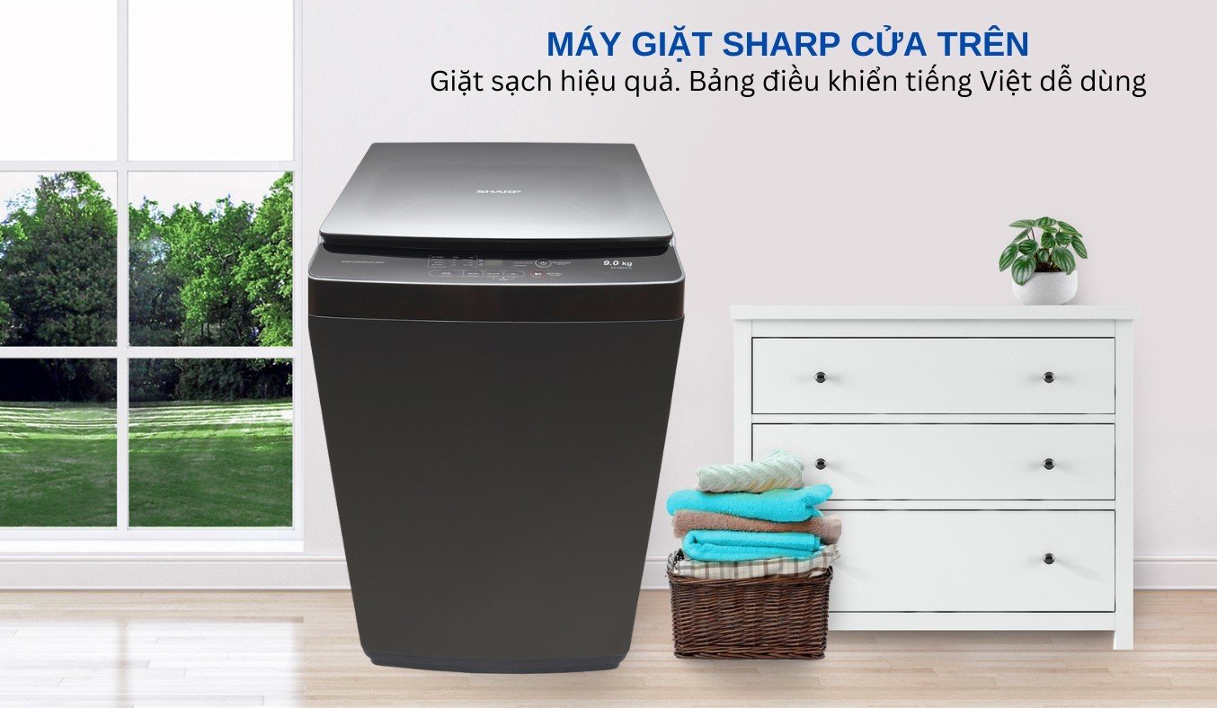 Máy giặt Sharp cửa trên, phù hợp gia đình 3 – 5 thành viên
