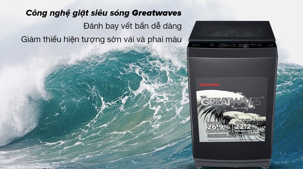 – Công nghệ giặt siêu sóng Greatwaves: Có khả năng tạo ra những cơn sóng mạnh mẽ từ các lỗ phun nước trên lồng giặt pha lê kết hợp với thanh tạo sóng Paddle kích thước lớn để đánh bay vết bẩn trên quần áo dễ dàng mà vẫn giảm thiểu được tình trạng sờn vải và phai màu.