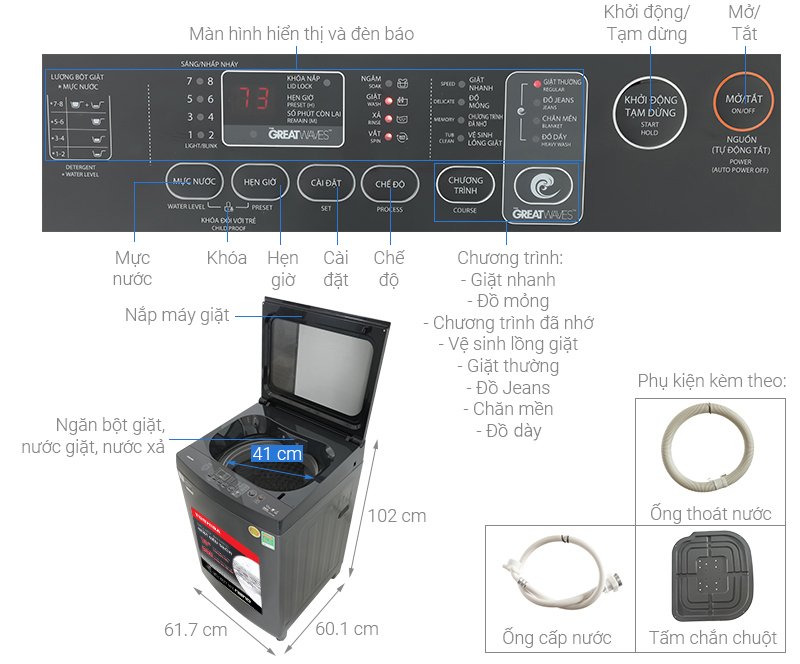 Thiết kế sang trọng, giặt sạch sâu, tiết kiệm điện