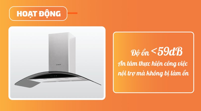 Độ ồn của máy hút mùi Malloca Gama K3155.9 là <59dB, giúp bạn có thể sử dụng trong không gian bếp mà không lo bị ảnh hưởng bởi tiếng ồn từ máy hút mùi.