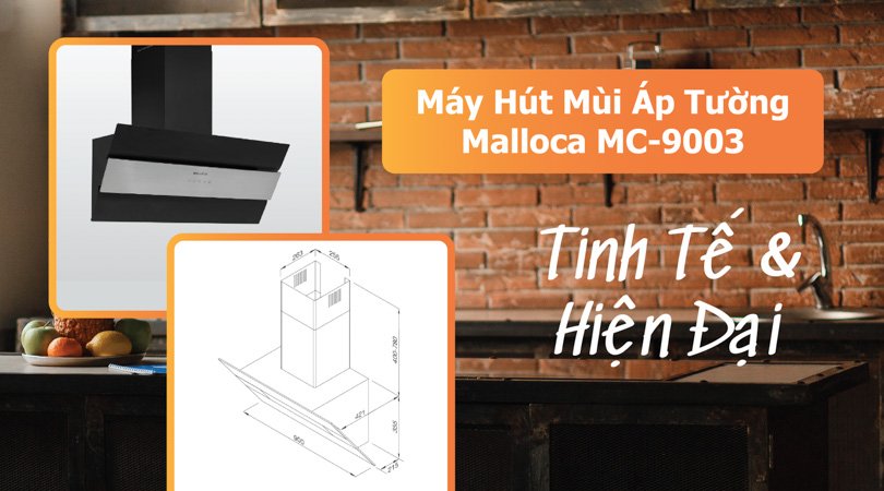 Malloca MC-9003 sẽ làm hài lòng ngay cả những khách hàng khó tính nhất. Với kích thước máy hút W900 x D421 x H(755 – 1135)mm và kiểu lắp áp tường, sản phẩm này có thể phù hợp với mọi không gian bếp của bạn.