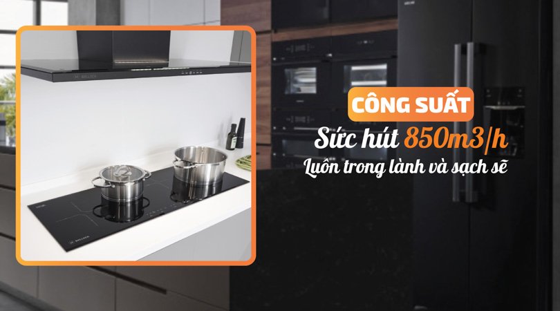 Với công suất hút 850m3/h, máy hút mùi áp tường có thể đáp ứng nhu cầu sử dụng của một căn bếp đông người. Kích thước máy hút W900 x D500 x H(635-1.015)mm phù hợp với hầu hết các kích thước bếp hiện đại.