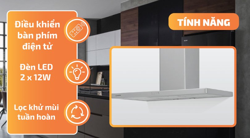 Bảng điều khiển điện tử và đèn LED giúp cho việc sử dụng máy hút mùi này trở nên dễ dàng và tiện lợi hơn bao giờ hết.