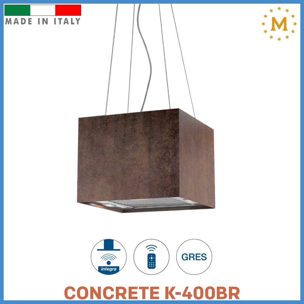 Malloca CONCRETE K-400BR mang đến vẻ đẹp tinh tế và sang trọng cho không gian bếp của bạn. Sản phẩm được sản xuất tại Ý, nổi tiếng với độ bền và chất lượng cao. Với kích thước W400 x D400mm, máy hút mùi này không chỉ tiết kiệm không gian mà còn mang đến sự hài hòa trong thiết kế tổng thể của căn bếp.