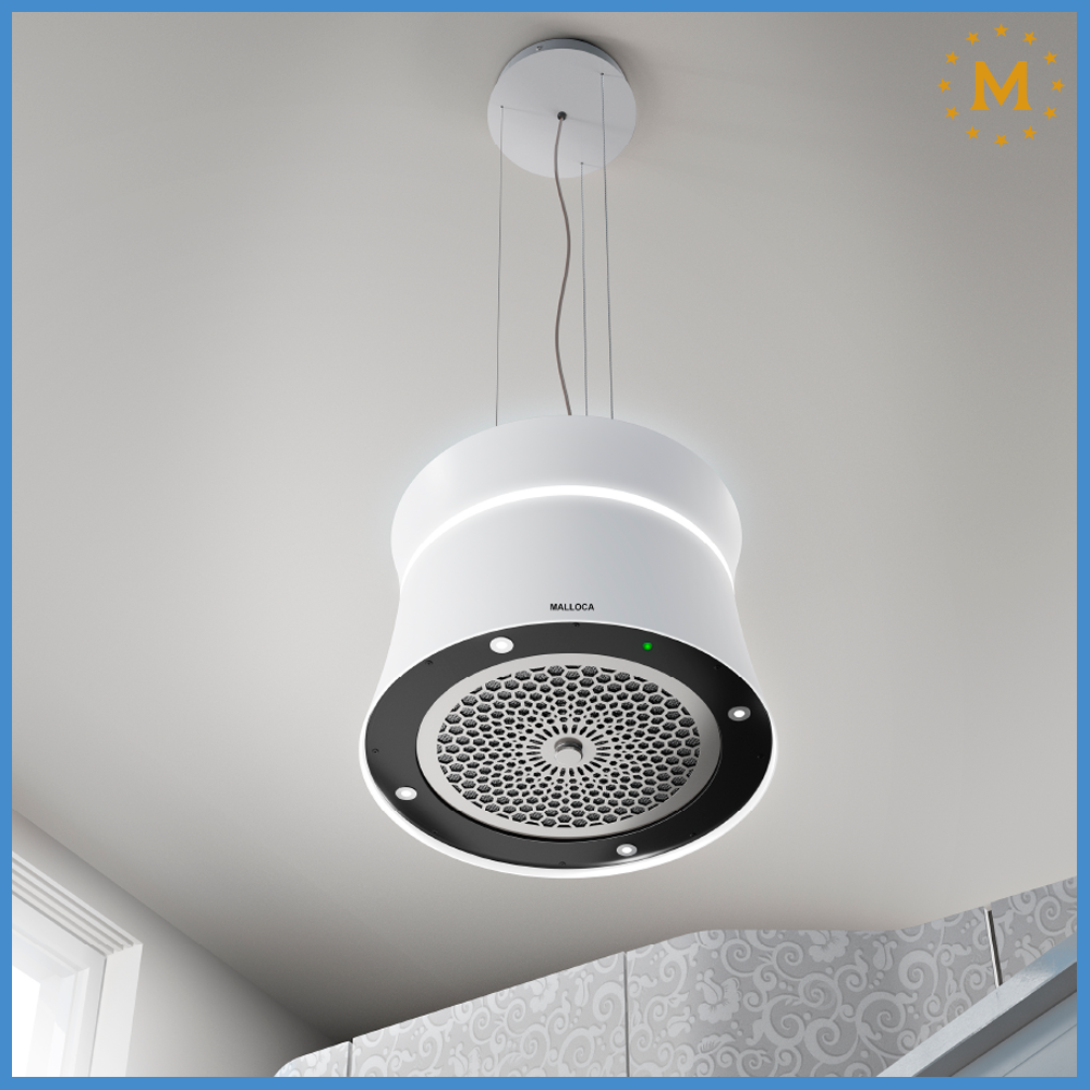 Mẫu máy hút mùi độc lập lắp đặt treo trần dành cho không gian bếp đảo hãng Malloca
