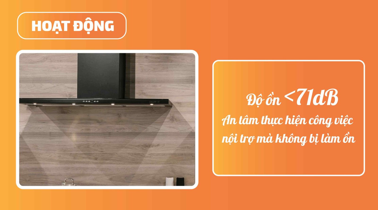 Máy hút mùi SLIM K-4250 áp tường có độ ồn khi hoạt động thấp hơn mức 71dB; điều này có nghĩa là máy hoạt động khá êm ái, tiếng ồn của sản phẩm không ảnh hưởng đến các hoạt động sinh hoạt khác của bạn.