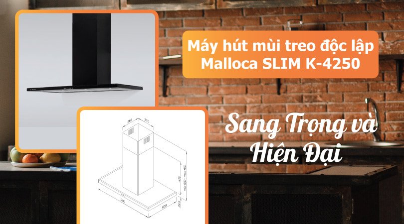 Máy hút mùi treo độc lập Malloca SLIM K-4250 phím điện tử 4 tốc độ