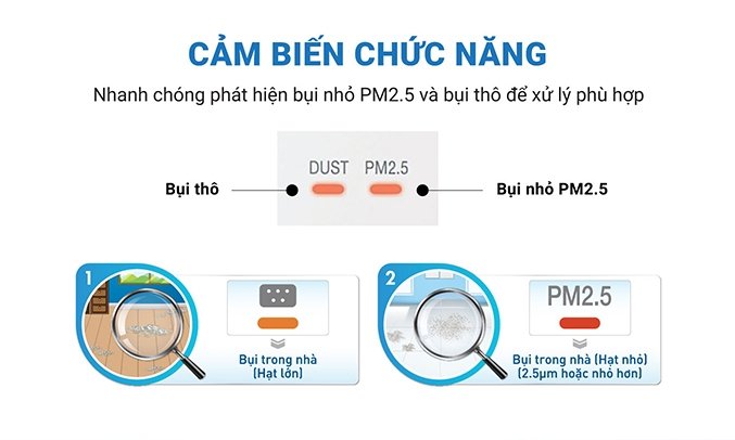Máy lọc không khí Daikin được trang bị cảm biến độ nhạy cao có thể phát hiện ra bụi thô và bụi mịn PM2.5, giúp chúng ta theo dõi được mức độ ô nhiễm không khí