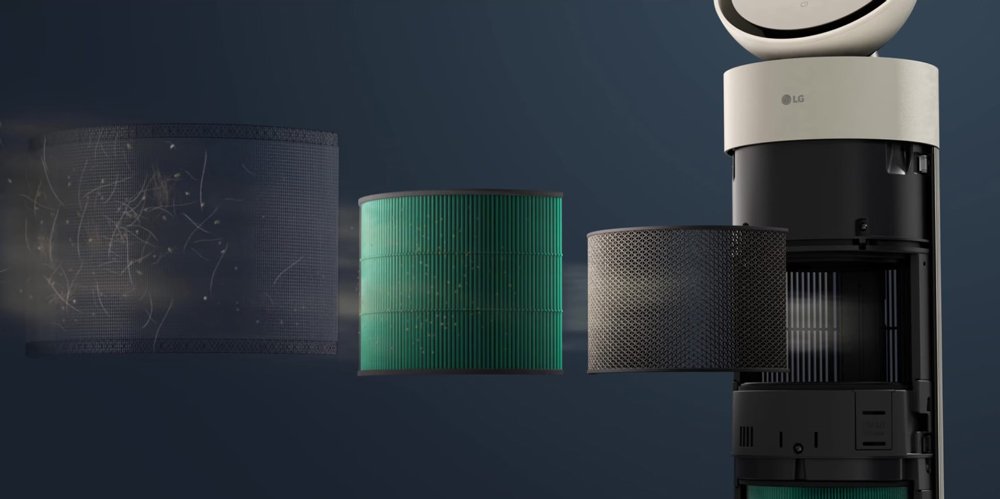 LG PuriCare Aero Booster được trang bị bộ lọc 3 lớp gồm màng lọc HEPA, màng lọc than hoạt tính và màng lọc thô, có khả năng lọc bụi bẩn, các hạt siêu mịn, vi rút, vi trùng, mùi hôi, vi khuẩn,… Kết hợp công nghệ UVnano™ và ion âm diệt khuẩn mang đến giải pháp làm sạch không khí toàn diện, giúp không khí trong lành, sạch khuẩn.
