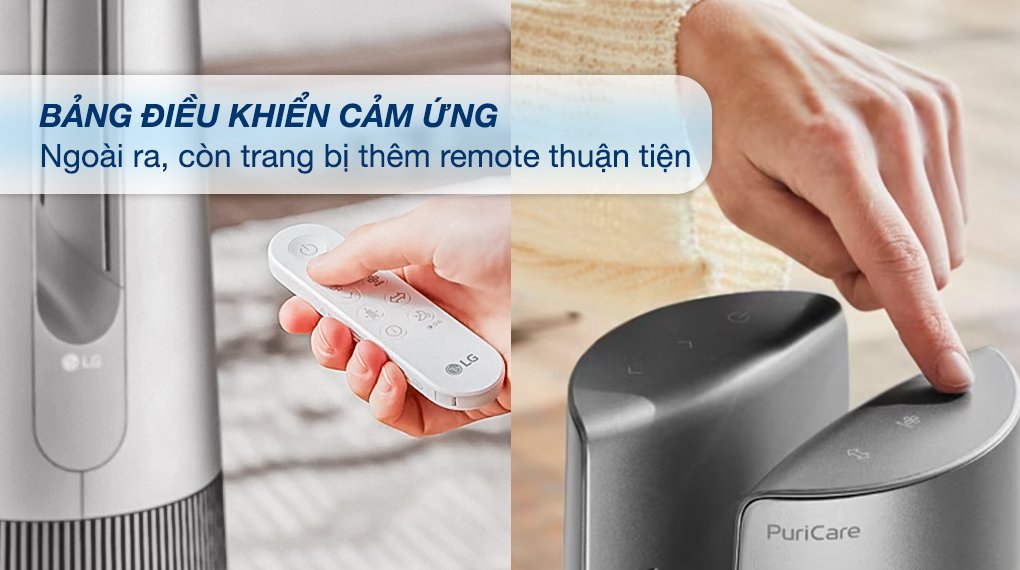 Bảng điều khiển cảm ứng nhạy có màn hình hiển thị chất lượng không khí, nhiệt độ, độ ẩm, kết nối wifi và các chế độ hoạt động,… với các biểu tượng rõ ràng trên bảng điều khiển giúp bạn dễ dàng thao tác và sử dụng ngay cả với người lớn tuổi. Ngoài ra trang bị thêm remote giúp điều khiển từ xa dễ dàng.
