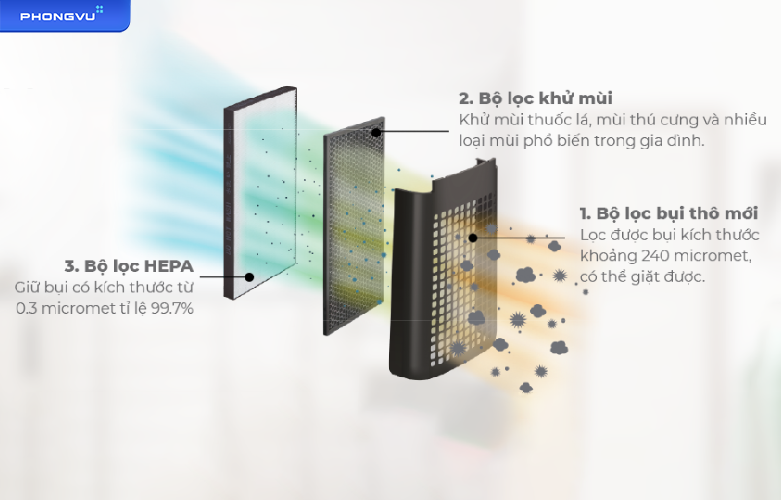 Hệ thống 3 bộ lọc tối ưu, công nghệ Plasmacluster Ion