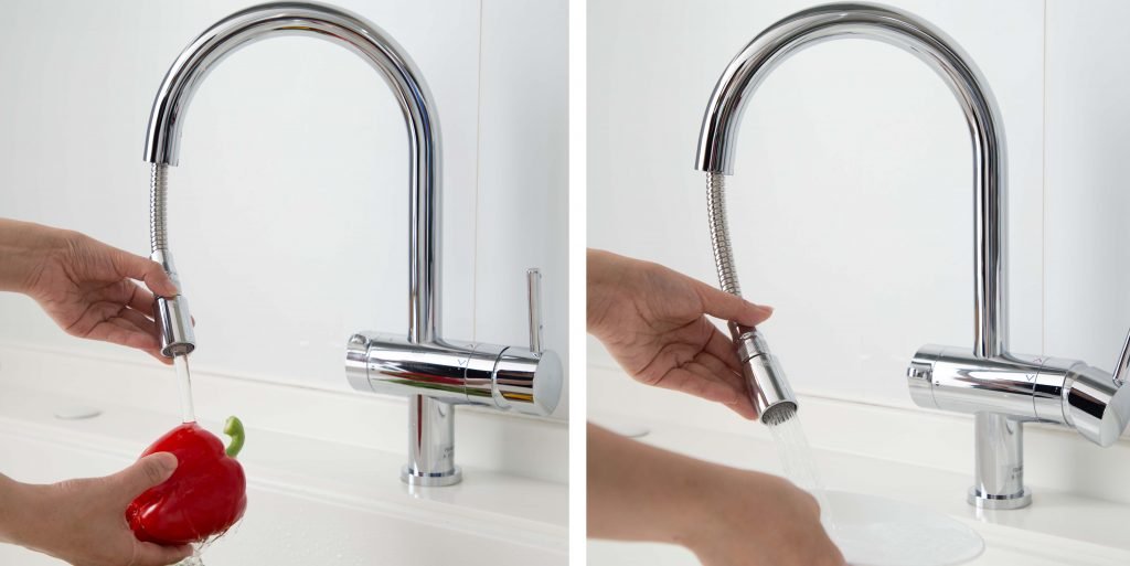 – Vòi nước có thể dễ dàng tháo ra di chuyển nhiều góc độ.