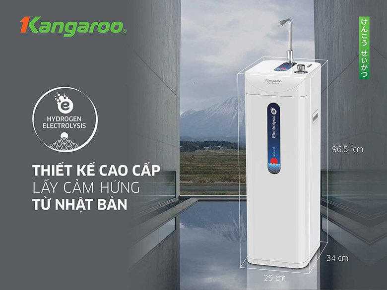 Máy lọc nước Kangaroo KG10A8ESG có kiểu dáng Slim thon gọn với các cạnh được bo cong mềm mại, tinh tế mang đến sự sang trọng, tiện nghi cho không gian sống của gia đình bạn. Lấy cảm hứng từ Nhật Bản, máy có gam màu nhẹ nhàng, thanh khiết của tuyết trắng, điểm nhấn là họa tiết sóng biển và mặt trời đỏ trên núi Phú Sĩ. Vỏ tủ vân nhám chống bám bụi. Thiết kế 1 cửa đóng mở dạng cánh quay ở mặt trước thân máy giúp bạn dễ dàng quan sát, hoặc thao tác khi thay thế lõi tiện lợi.