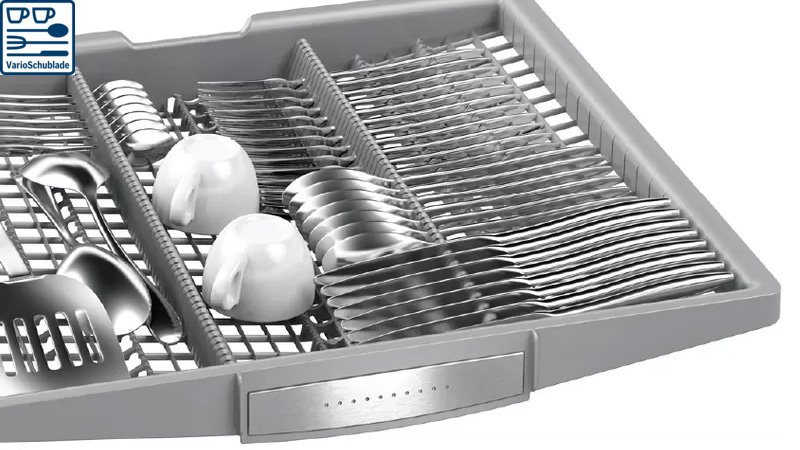 Khay thìa dĩa trên cùng VarioDrawer được thiết kế lại tối ưu hóa diện tích sử dụng, cung cấp thêm không gian cho những vật ti lớn như dao kéo, muỗng hoặc các vật nhỏ như cốc uống cafe.
