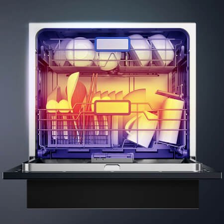– Dung tích: 8 bộ Châu Âu, 2 tầng giá rửa bát (Có thể để được 10 bộ).