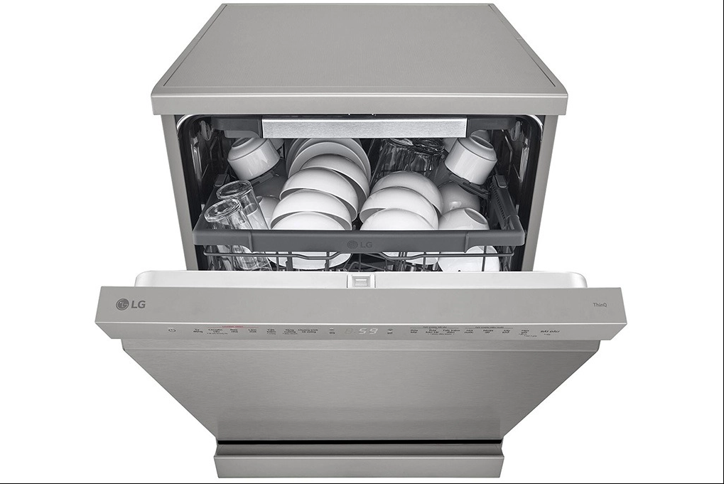 – Điều khiển bằng điện thoại thông ứng dụng LG ThinQ: điều khiển các chức năng của máy rửa bằng điện thoại từ xa giúp người dùng dễ dàng kiểm soát thời gian hoạt động của máy.
