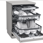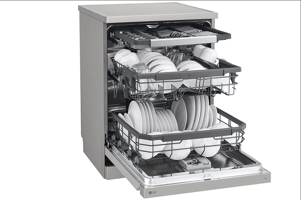 – Máy rửa bát LG này được thiết kế bên trong gồm có 3 khay rửa: khay dao muỗng, khay trên và khay dưới.