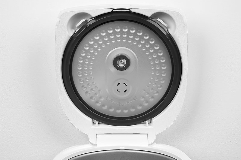 Thiết kế này giúp hạn chế hơi nước đọng lại trên nắp rồi rơi lại vô bề mặt cơm làm nhanh hư cơm.