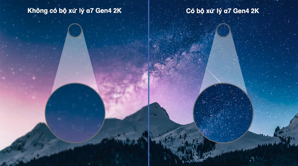 Con chip mạnh mẽ này tự động nhận dạng nội dung và điều kiện ánh sáng xung quanh, tối ưu hóa thiết lập màn hình phù hợp, đảm bảo hình ảnh hiển thị sắc nét, chất lượng cao.