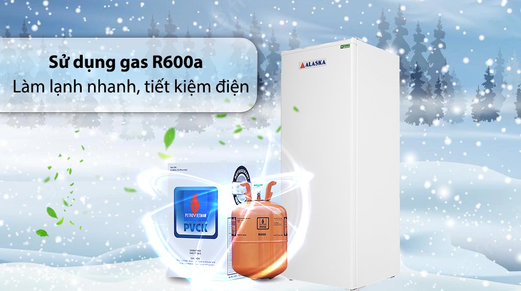 – Ngoài việc nâng cao khả năng làm lạnh nhanh, tủ đông 210 lít này còn được trang bị Gas R600a thân thiện với môi trường, tiết kiệm 40% điện năng tiêu thụ.