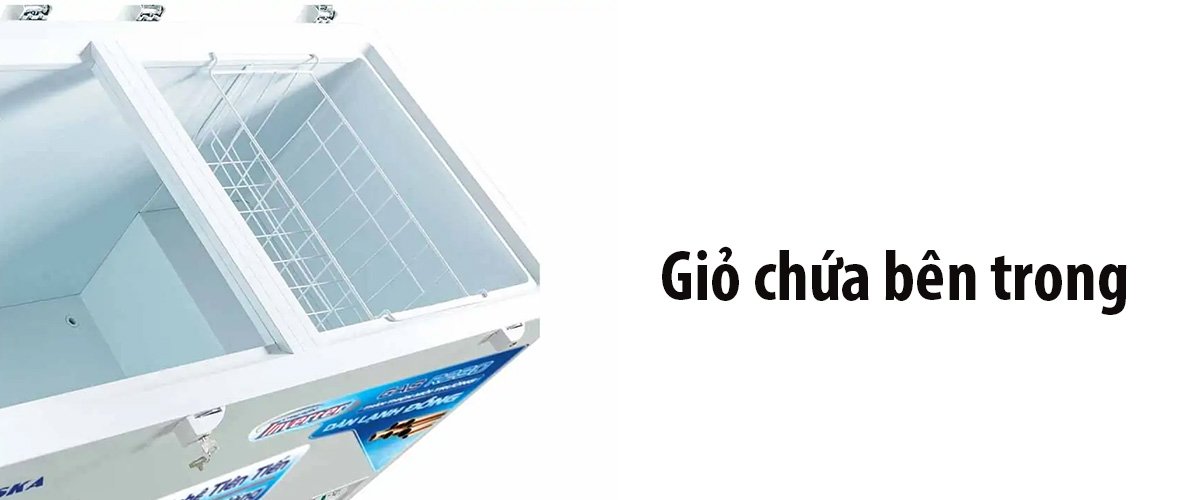Alaska trang bị giỏ chứa bên trong, mang đến sự tiện lợi và tổ chức cho quá trình bảo quản thực phẩm. Giỏ chứa giúp bạn sắp xếp và phân loại các loại thực phẩm một cách dễ dàng, tạo ra không gian sạch sẽ và gọn gàng trong tủ đông. Bạn có thể đặt các sản phẩm nhỏ như đông lạnh, thực phẩm đóng gói hay rau củ quả trong giỏ chứa, giúp cho việc tìm kiếm và truy cập nhanh chóng. Với giỏ chứa bên trong tủ, bạn có thể tận dụng tối đa không gian và sắp xếp thực phẩm một cách hiệu quả.