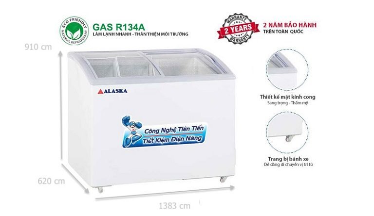 Tủ đông Alaska 510Y/KC-310 sử dụng môi chất làm lạnh Gas R134a thế hệ mới giúp tiết kiệm điên năng, bảo vệ sức khỏe của tất cả mọi người, thân thiện với môi trường.