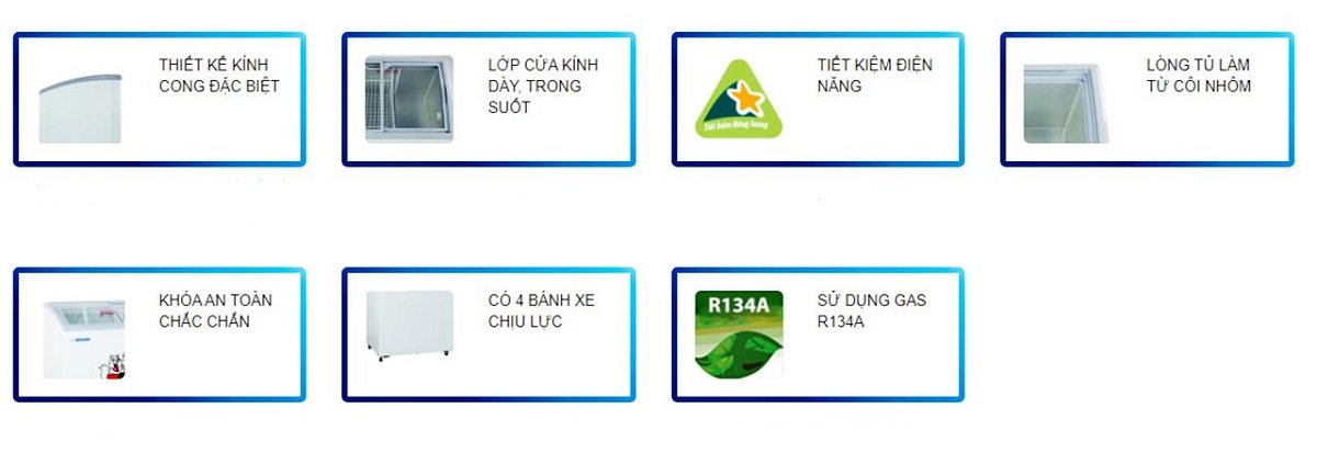 Tủ đông được trang bị mặt kính chịu lực chắc chắn, có khả năng chịu nhiệt tốt giúp tủ giữ lạnh tốt hơn, tiết kiệm điện năng tối đa.
