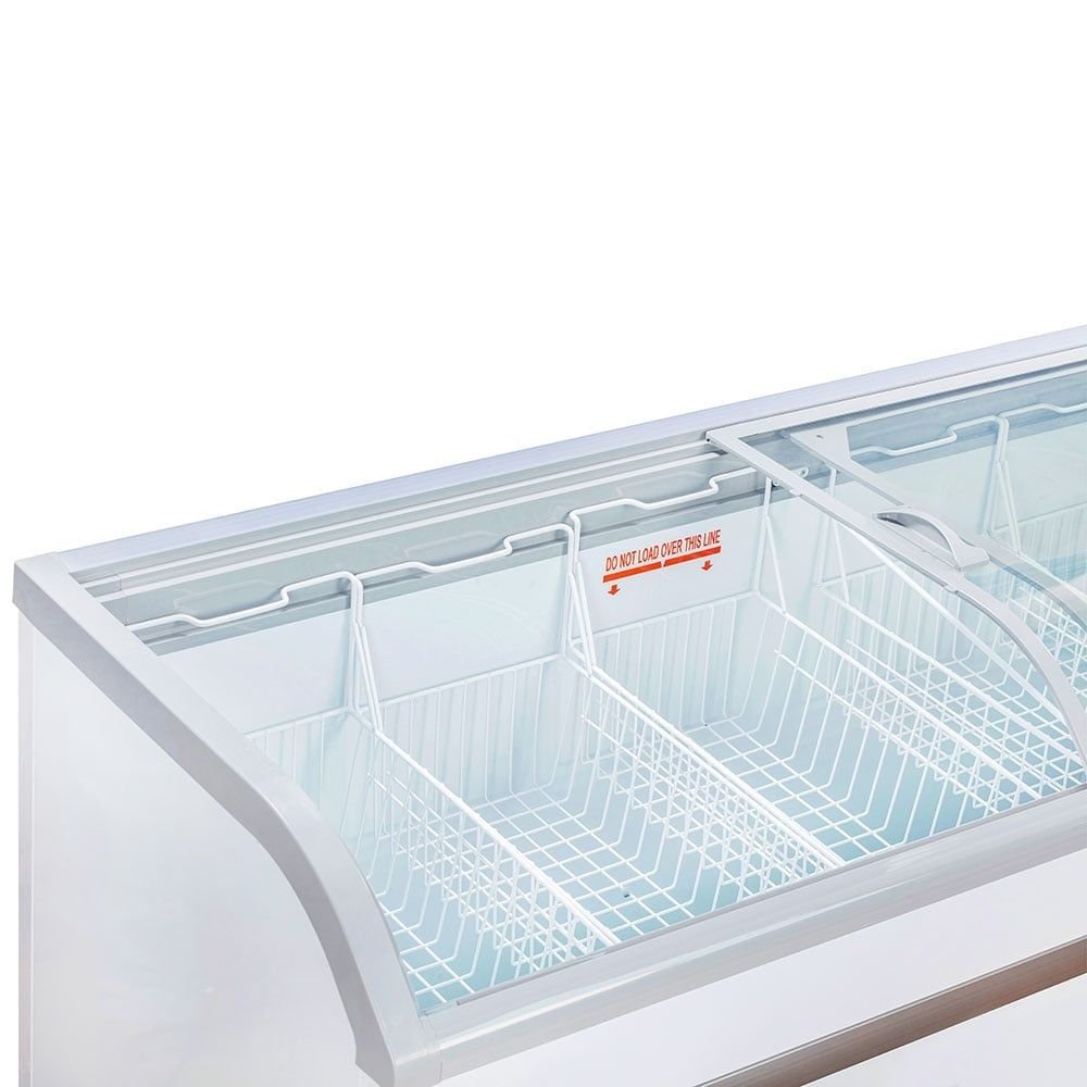 Tủ đông Alaska KC-550CI có mặt kính cong chịu lực chắc chắn, cách nhiệt hiệu quả giúp tủ đông giữ lạnh tốt hơn và tiết kiệm điện năng.