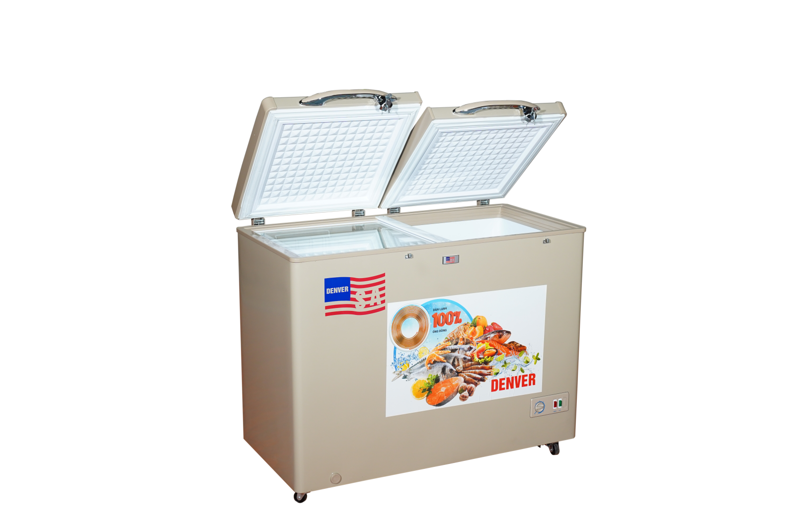Tủ đông Denver AS 500HDI được thiết kế với hai cánh mở vali dễ dàng sử dụng và an toàn hơn những thiết kế nắp trượt.