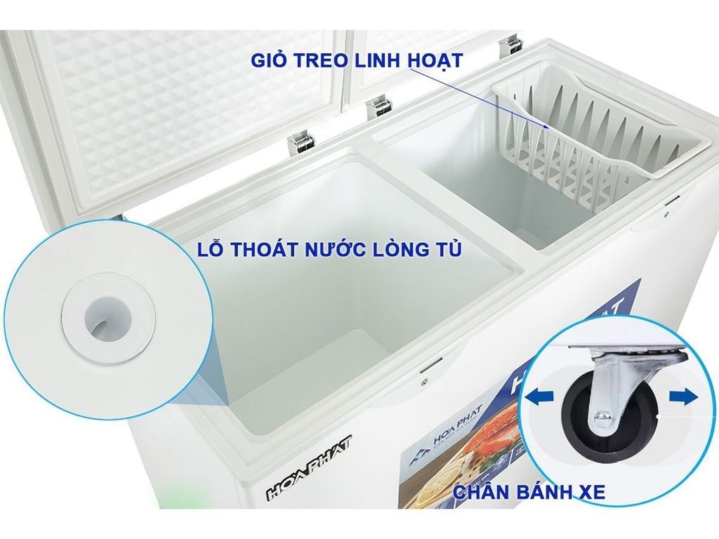 – Giỏ đựng đồ: người dùng có thể bảo quản được nhiều loại thực phẩm, phân loại và sắp xếp chúng gọn gàng để dễ lấy và đặt vào trong tủ đông Hòa Phát.